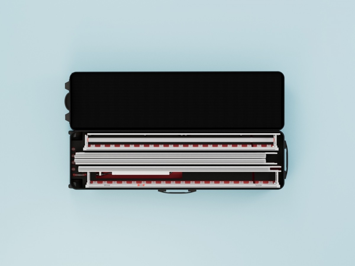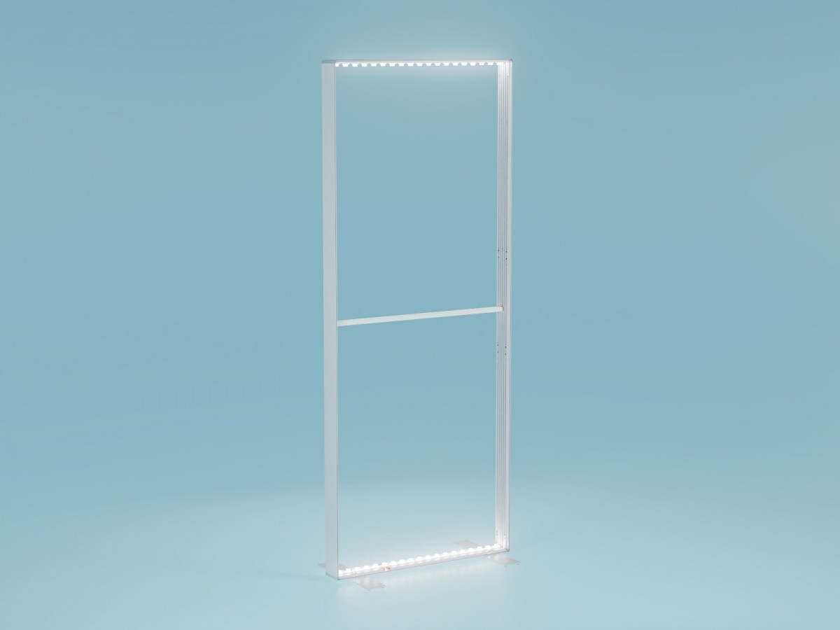 Die Innenkonstruktion besticht durch hochwertig verarbeitete Aluminium-Elemente. Ein intuitives Farbleitsystem vermittelt, was zusammengehört. Dank des weltweit patentierten LEDUP Stecksystems gleiten die sorgfältig geglätteten Aluminiumprofile mühelos ineinander und verbinden sich zu einem eleganten und hochstabilen Leuchtrahmen. Zwei einfach von der Hand anzubringende Schrauben verbinden den Rahmen mit den soliden Füßen. Rundumlaufend vernähte Silikonkeder sorgen für faltenfreie Spannung der Sujets.