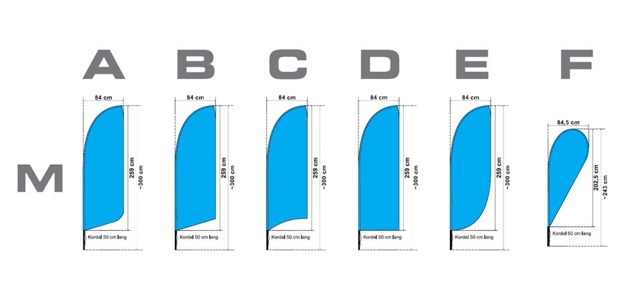 Die Beach Flag M ist in 6 verschiedenen Formen erhältlich. Sie wird standardmäßig mit Bodendübeln geliefert. Ein Rotator der sicherstellt dass sich die Flag um die eigene Achse dreht ist inklusive. Für die Beach Flag M sind alternativ auch andere Bodenbefestigungen wählbar.