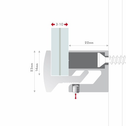 Variables Klemmsystem ohne Bohrung - Sie können ein Profil an der Wand montieren, das zweite einhaken, dann das Paneel auflegen und mit Madenschrauben fixieren. Paneele diverser Stärken werden ohnen Bohrung sicher befestigt.
