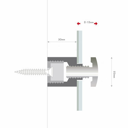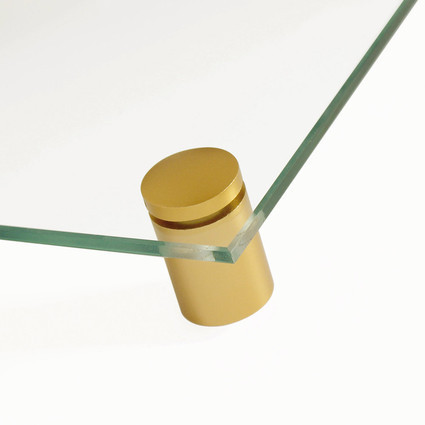 Schraubsystem für grössere Paneele mit mehr Wandabstand. Hülsenhals für leichtes Positionieren des Paneels. Fingerabdruck-resistent. Befestigung: Schraubsystem, frontale Montage. Material: matt eloxiertes Aluminium, gold beschichtet.
