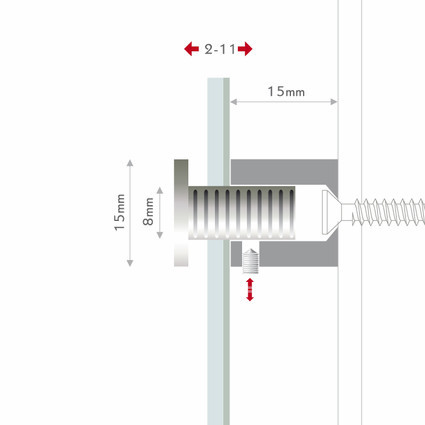 Wandabstand: 15 mm, 20 mm, 25 mm.