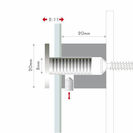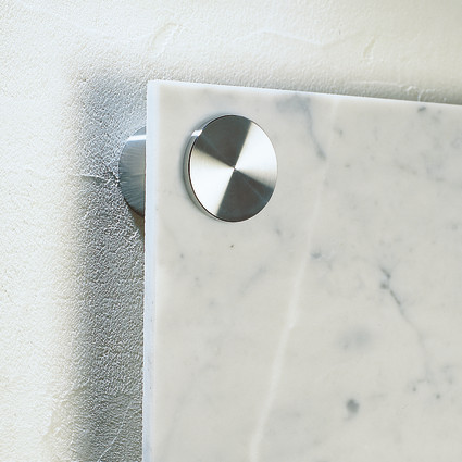 Hochwertiger Edelstahl, elegante Facettenoptik, Stecksystem mit Arretierung. Halter an der Wand befestigen, Paneel auflegen, Kopf durch das Paneel in den Halter stecken und mit seitlicher Madenschraube im Halter gegen Manipulation sichern.