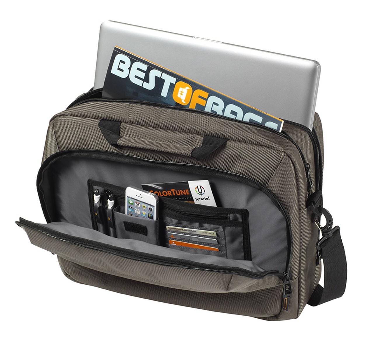 gepolstertes Hauptfach mit 2-Wege-Reißverschluss, gepolstertes Notebookfach mit Halterung