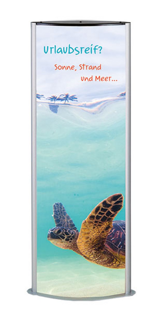 Die Poster lassen sich mit den seitlichen Alu-Klemmprofilen einfach anbringen. Dabei haben Sie die Wahl: entweder auf jeder Seite ein Motiv im Format B 594 x H 1682 mm oder auf jeder Seite zwei DIN A1 Motive übereinander.