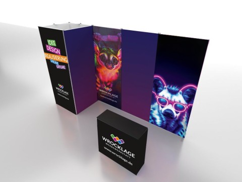 Die easyWall ist ein faltbares Textilwand-System für professionelle Markenauftritte auf Messen, Events, Roadshows oder im Einzelhandel. Dank des cleveren Steck- und Faltsystems lässt sich der Aluminiumrahmen oben und seitlich zusammenklappen – für einen kompakten Transport und schnellen Aufbau ohne Werkzeug.