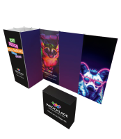 Dank der faltbaren Rahmenkonstruktion und des leichten Aluminiumprofils bleibt der gesamte Stand mobil, transportfreundlich und schnell aufgebaut. Alle Komponenten sind in Schwarz oder Silber erhältlich und ergeben ein harmonisches, modernes Gesamtbild.