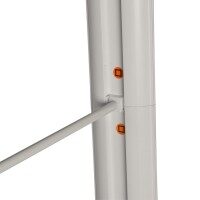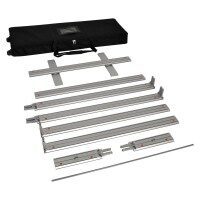 Das System ist in verschieden Größen und Höhen verfügbar. Geliefert wird der Textilrahmen in einer gepolsterten rollbaren Transportasche.