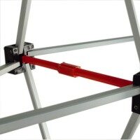 Die Grafik wird mit Klettverschluss am Faltdisplay befestigt und verbleibt auch beim Transport fest am System. Das Pop-Up-Scherengestell aus Aluminium wird mit Sicherheits-Widerhaken arretiert. Die Schraubfüße an der Vorderseite sind höhenverstellbar und richten das System auch bei unebenem Untergrund optimal aus.