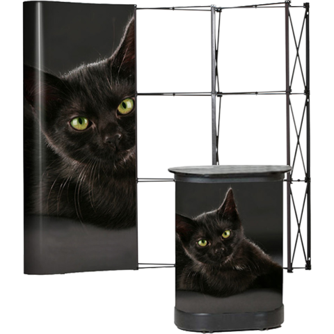 Verstaut wird das Top-Faltdisplay am besten in einem Hardcase-Transportkoffer, der sich im Handumdrehen zur passenden Theke umbauen lässt. Haben wir Sie überzeugt? Dann am besten gleich bei uns anrufen!