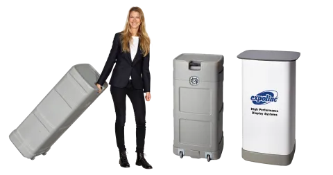 Ein System, zwei Funktionen: Der Expolinc Standard Case ist zugleich robuster Transportkoffer und elegante Messetheke. Ideal für alle, die auf Messen mobil, effizient und professionell auftreten möchten.