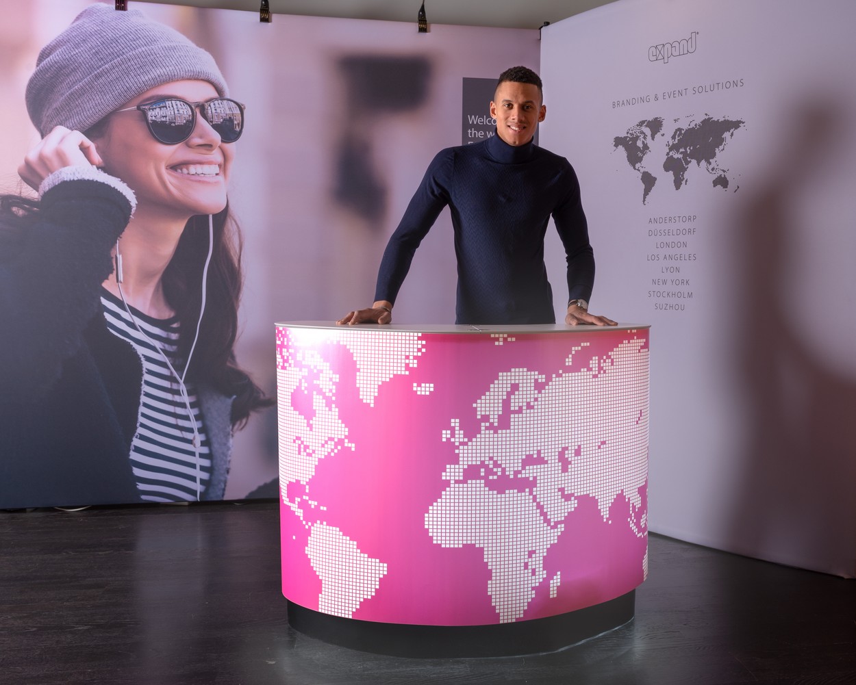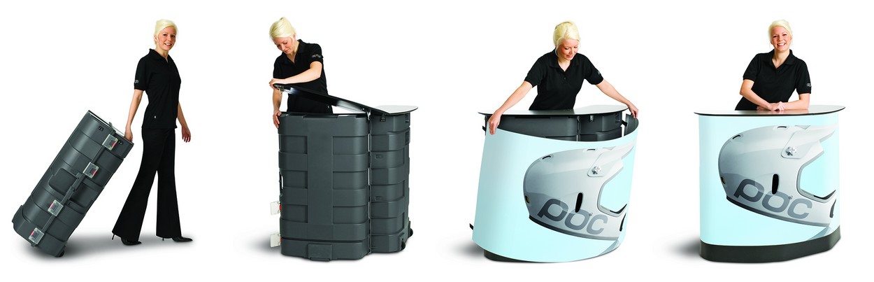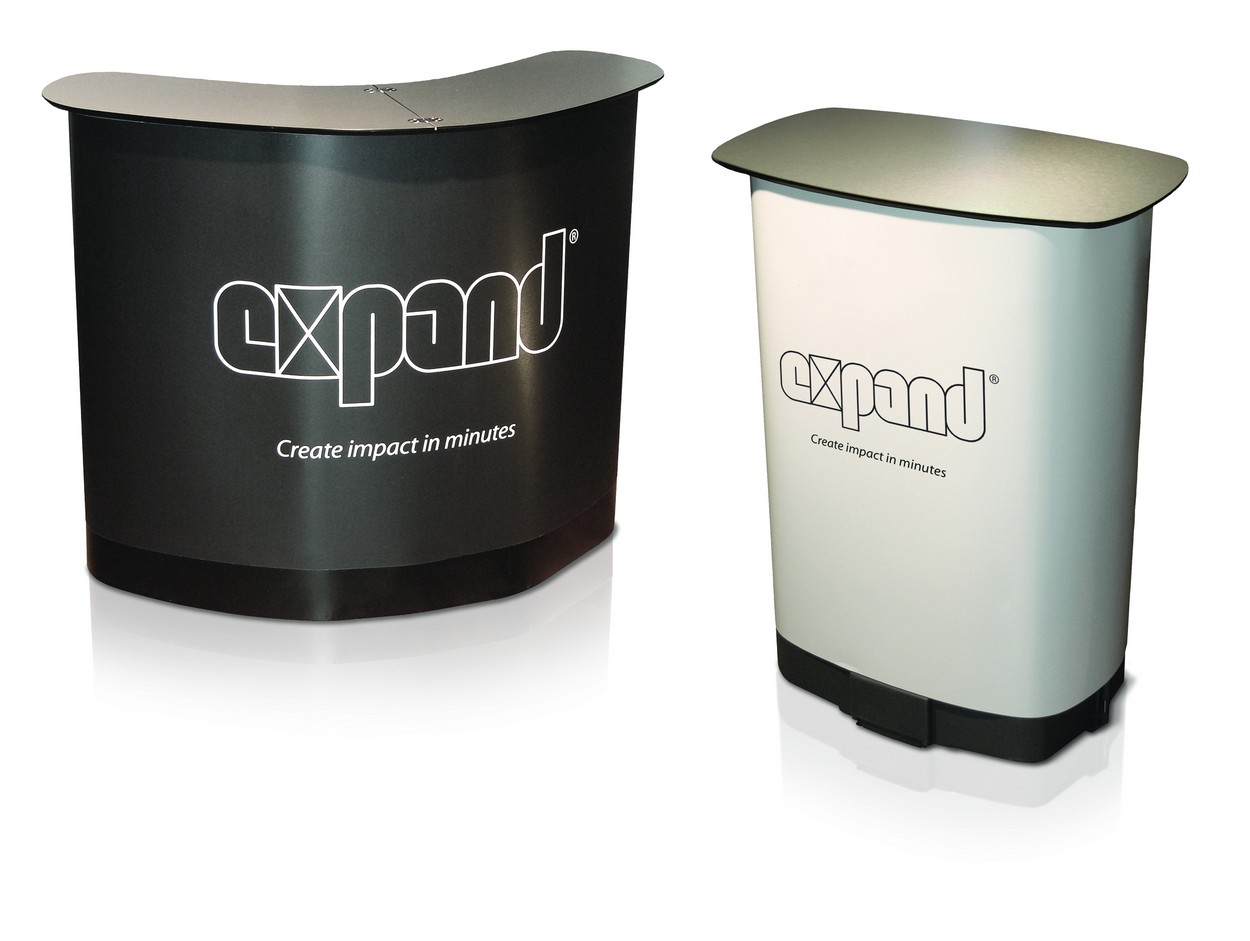 Aus einer sicheren Transportbox wird im Nu eine geräumige Präsentationstheke. Die Podium Case von Expand kann in geöffneter Form zur großen Theke verwandelt, oder in geschlossener Form als kleines Podium genutzt werden. Expand bietet nützliches Zubehör optional an, wie z. B. ein Aufsatzschild, einen Monitor- und einen Prospekthalter sowie Regalböden. Eine individuelle Werbegrafik kann leicht angebracht werden.