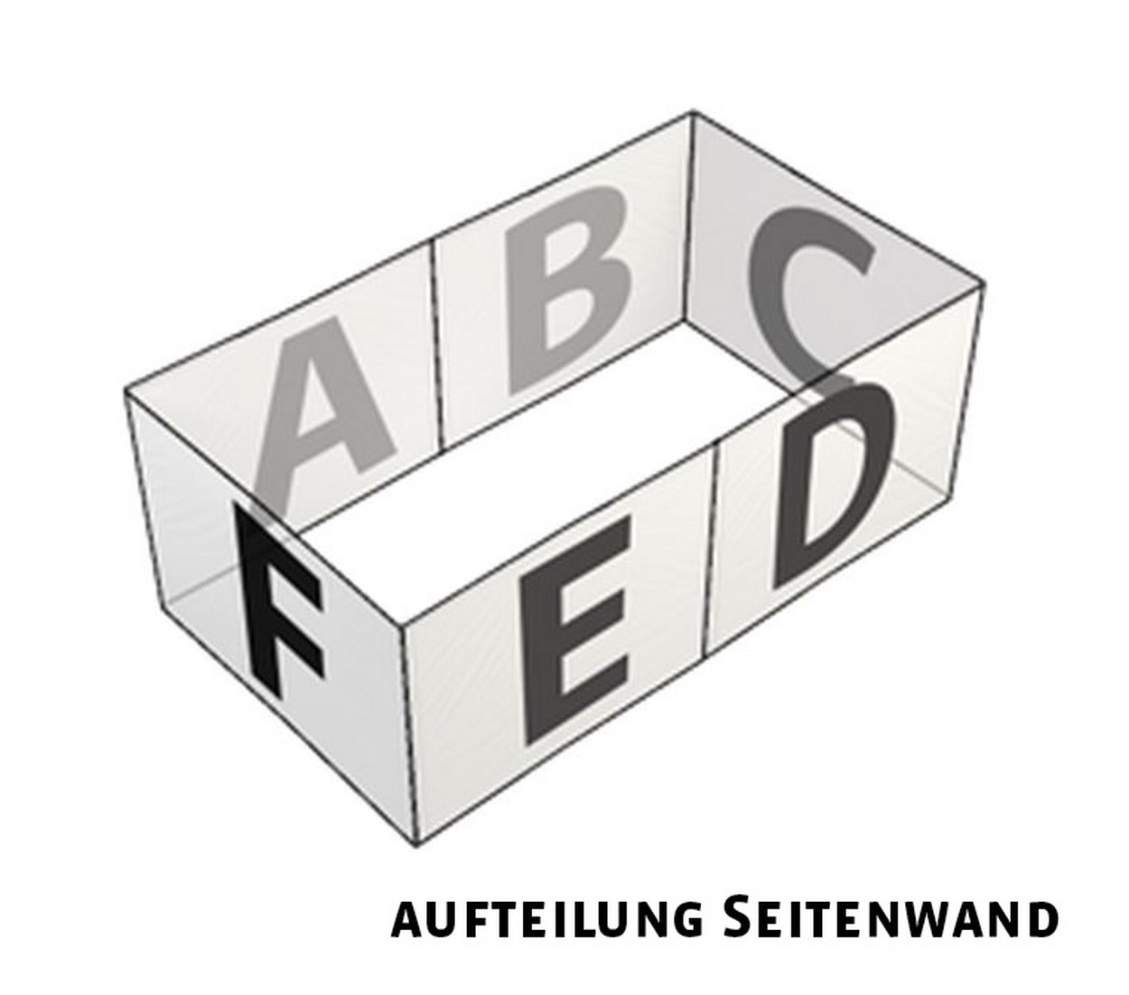 Seitenwände: feuerhemmendes (B1) und wasserdichtes Polyester 220g/m², fäulnisresistent und auf Lichtechtheit geprüft.