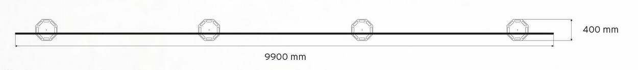 Standmaße: B 9900 x T 400 mm