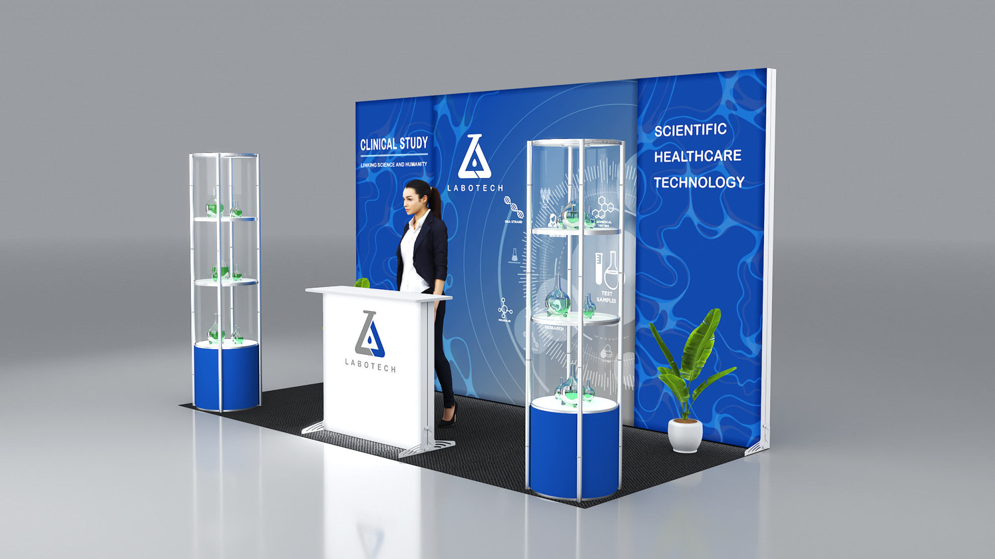 2 x Falt-Vitrine H 200 cm, inkl. Rolltasche und Paneelen