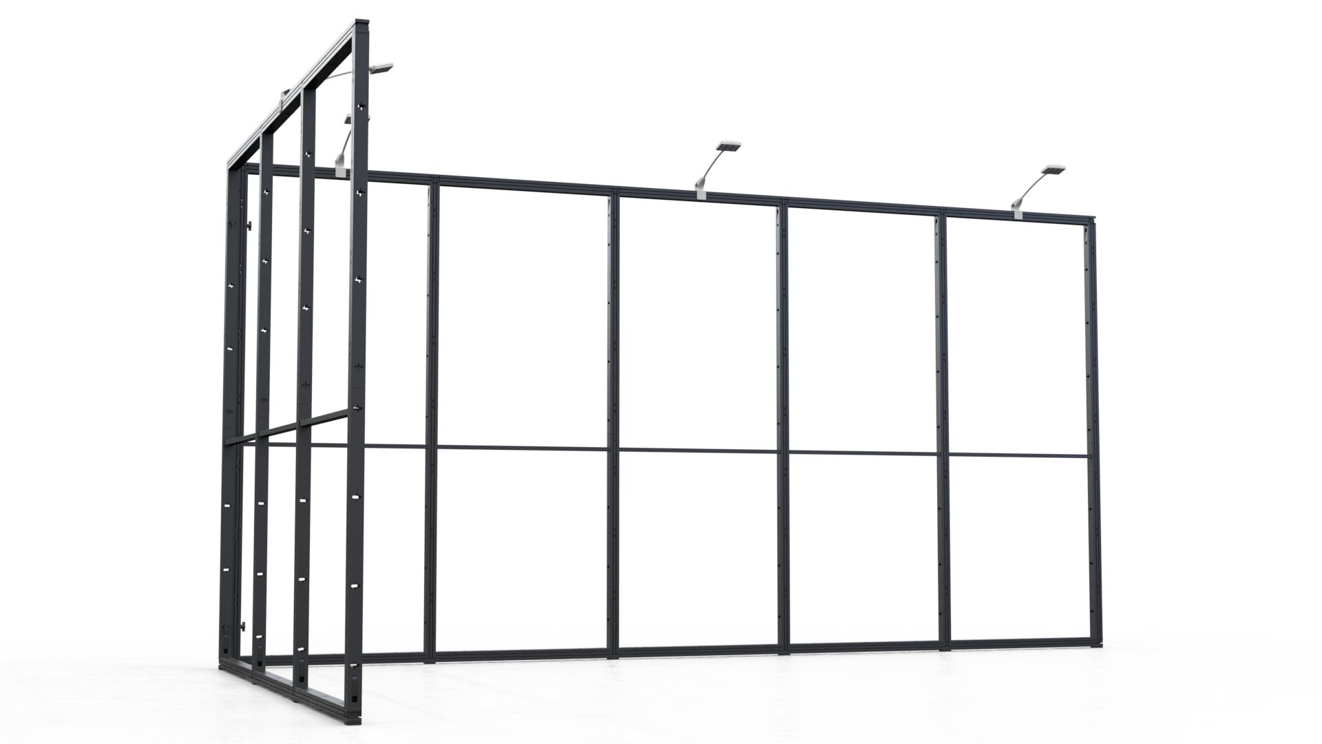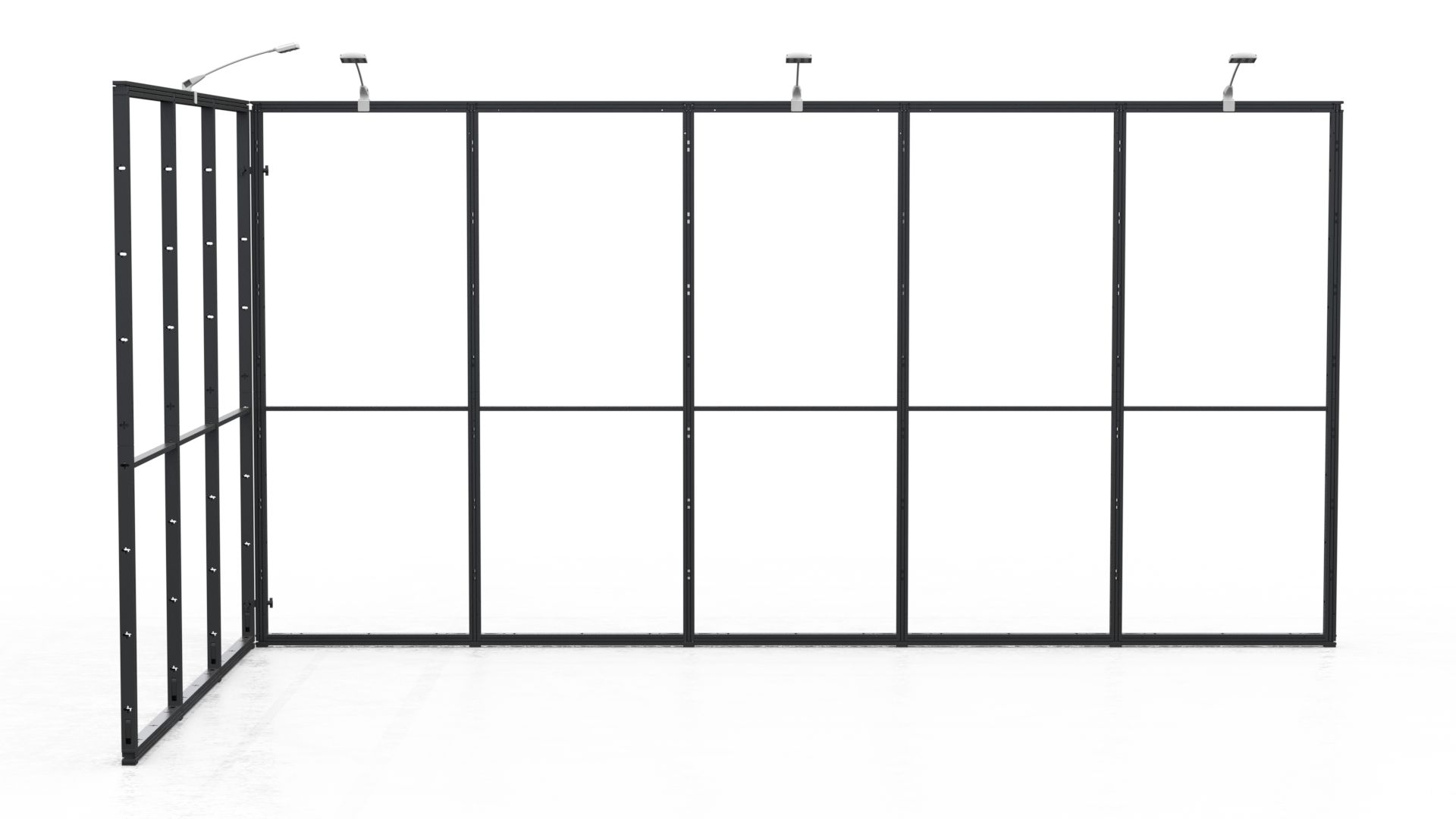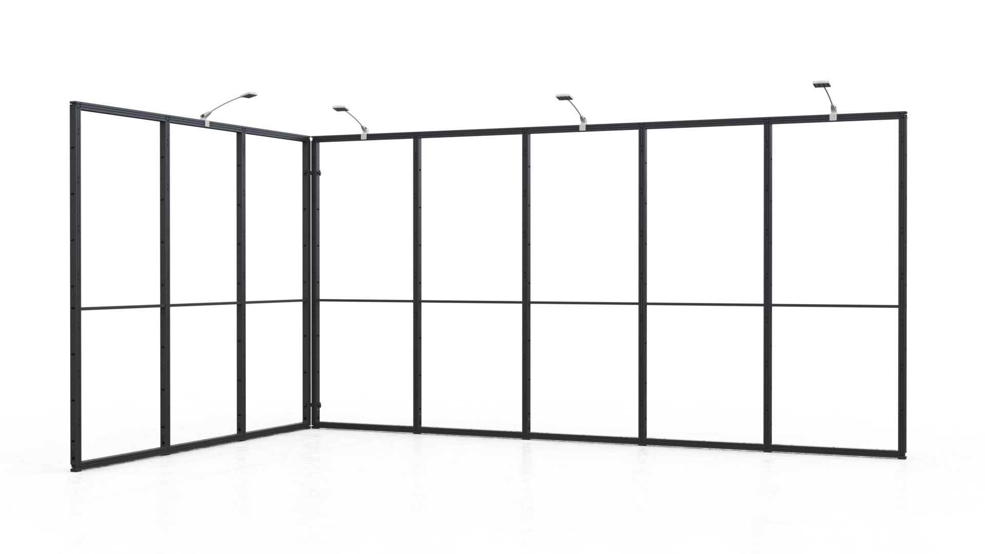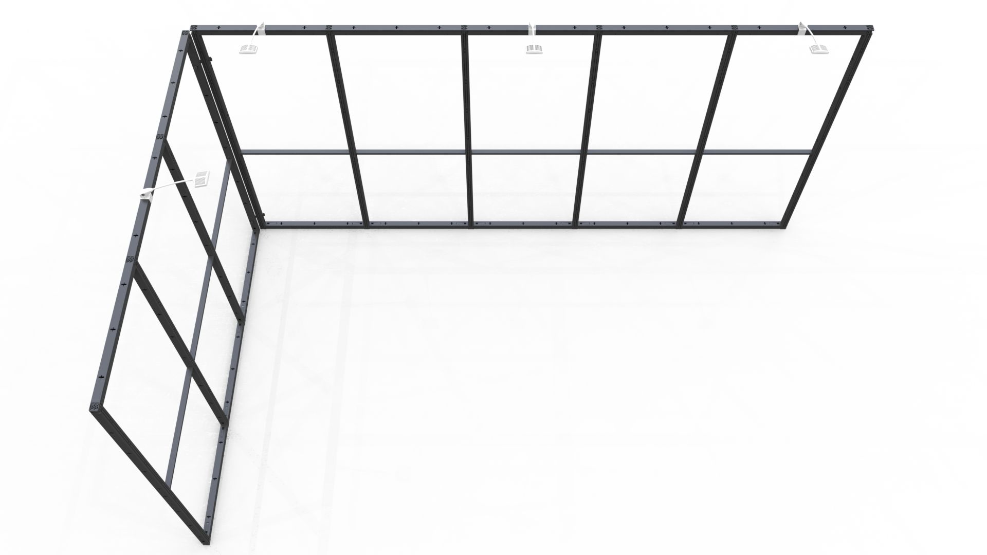 Stützen, Zargen, Mittelstangen, Verbinder, Systemfüße und Transporttaschen in benötigter Anzahl