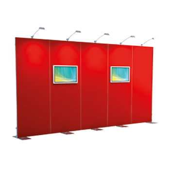 Freistehende Messewand des Markenherstellers Octanorm mit vielseitigen Einsatzmöglichkeiten.