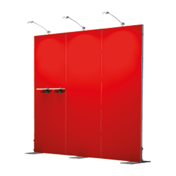 Freistehende Messewand des Markenherstellers Octanorm zum Beispiel als PR- oder Promotionwand einsetzbar.