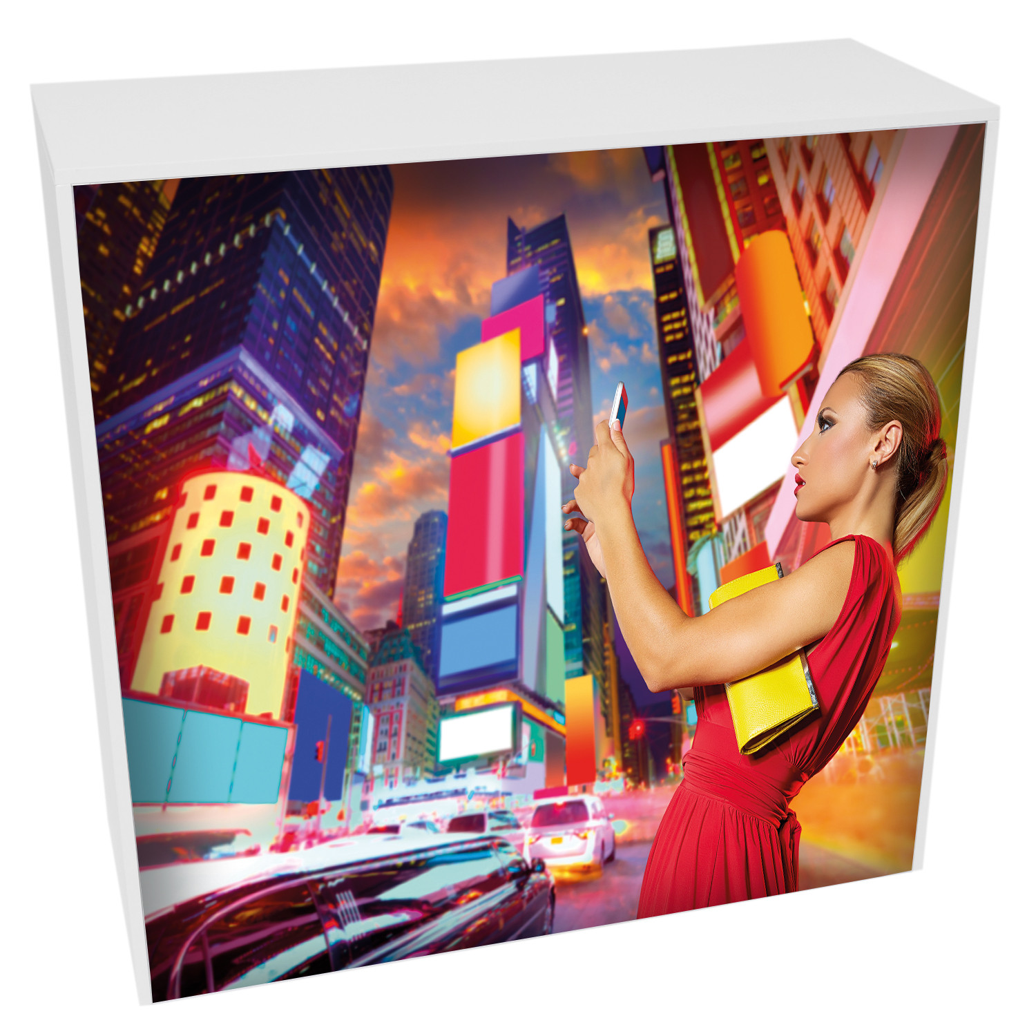 - Gehäuse aus 18 mm MDF-Platten, weiß