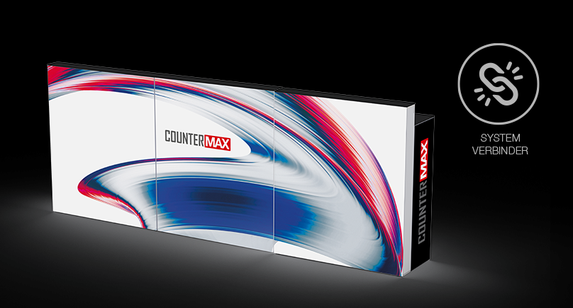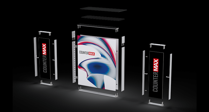 Counter MAX ist ein mobiles Thekensystem mit einer beleuchteten Bildfläche, mit einer Leistungsaufnahme von 32 Watt. Die Theke besteht aus einem LED Rahmen 100 x 116 cm, sowie einer Thekenplatte und einem Zwischenfach für extra Stauraum. Die Abmessungen der Theke sind B x H x T 100 x 118 x 44 cm.