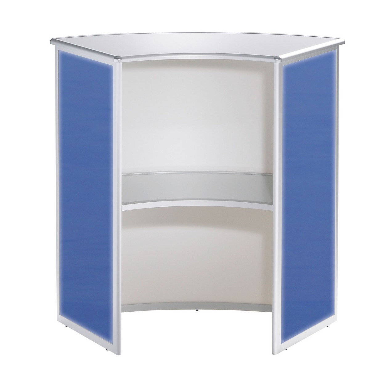 gewölbte Aluminiumtheke mit einem Ablagefach