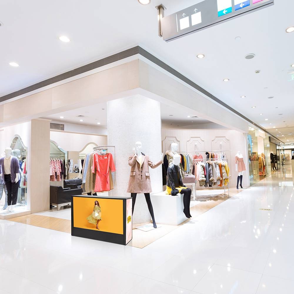 Im Zentrum steht ein integriertes 55"-Samsung-Display, das Ihre Werbebotschaften gestochen scharf und lebendig wiedergibt. Inhalte können per Plug & Play jederzeit aktualisiert werden – ideal für Messen, Events, Shops oder Promotions im Retail-Bereich.
