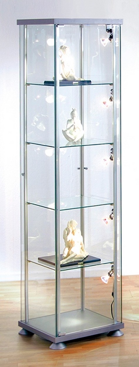 Die formschöne und standfeste Quadratvitrine ist mit 4 höhenverstellbaren
