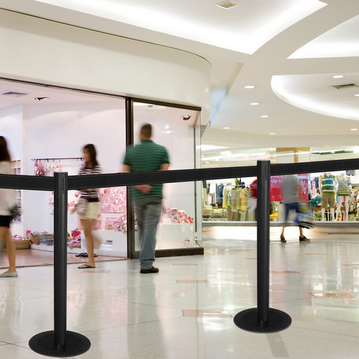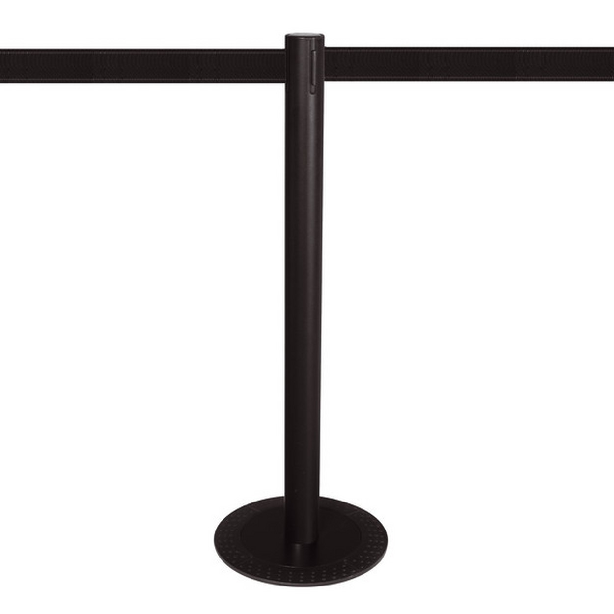 Die Dekorscheibe mit Stahlplatte für einen sicheren Stand, komplettiert den ABS-Trittschutzring und es entsteht die Basis für Ihren Stopper. Trittschutzring ABS, Ø 335 mm mit Grundplatte, Metall. Pfosten für das modulare Stopper Personenleitsystem mit Gurt. Die Oberflächenveredelung ist langlebig und unempfindlich gegen Fingerabdrücke.
