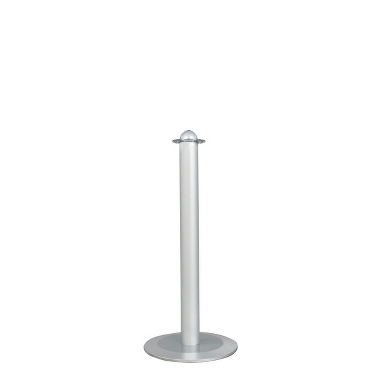 Basis ø 240 mm mit Grundplatte in Eisen, ABS-Abdeckung lichtgrau, Dekoreinsatz silber eloxiertes Aluminium. Gesamthöhe: 500 mm