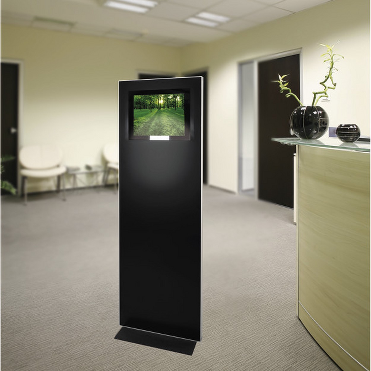 Ipoint media für die audiovisuelle Präsentation in elegantem Schwarz begeistert durch seinen 16" LCD Schirm. Optional statten wir die Ipoints mit Prospektablagen oder Display Bars aus. Einfach bei Bestellung mitteilen, welche Optionals sie wünschen. Unsere Produktion wird dies bei der Montage entsprechend vorsehen. Ein Nachrüsten ist aus montagetechnischen Gründen nicht möglich.