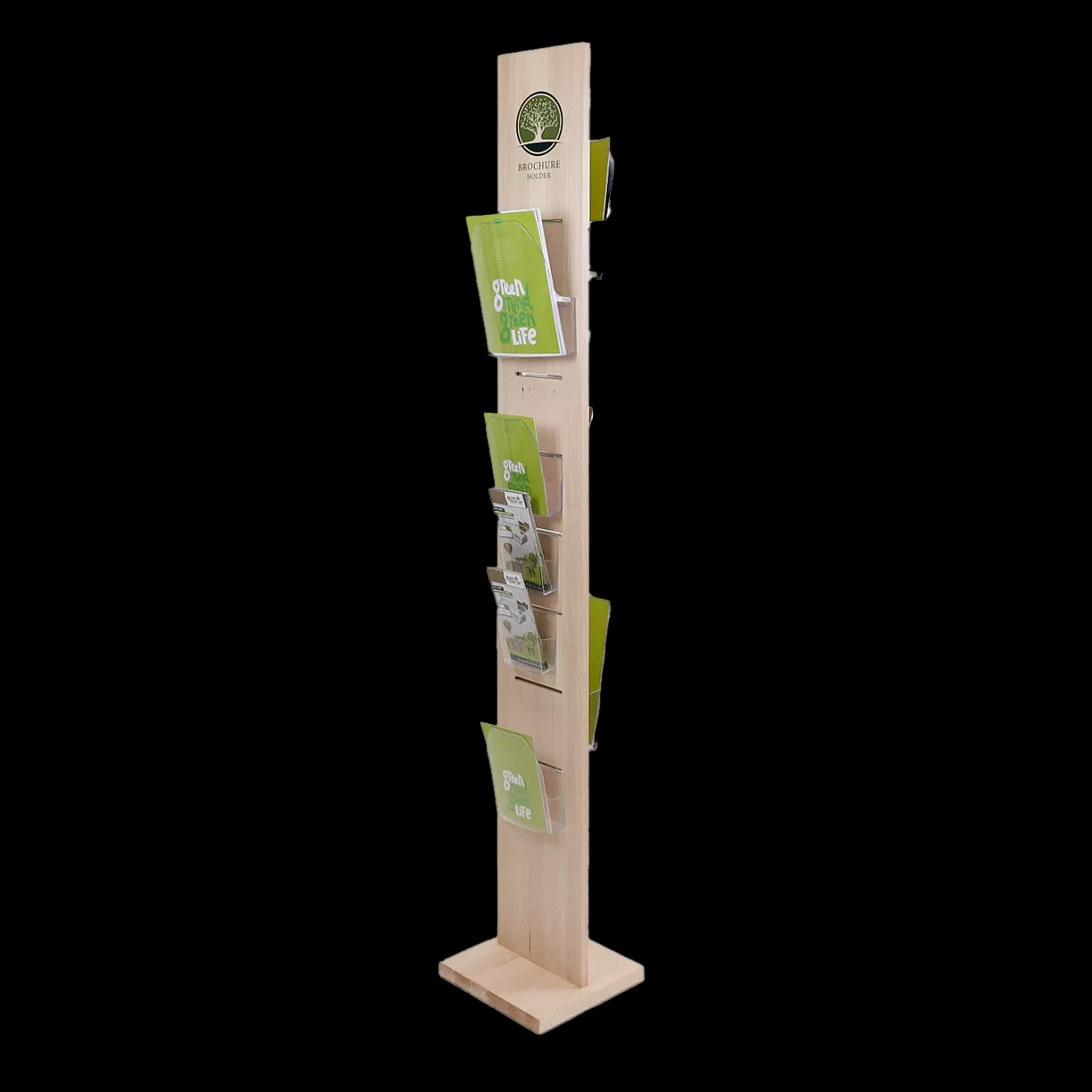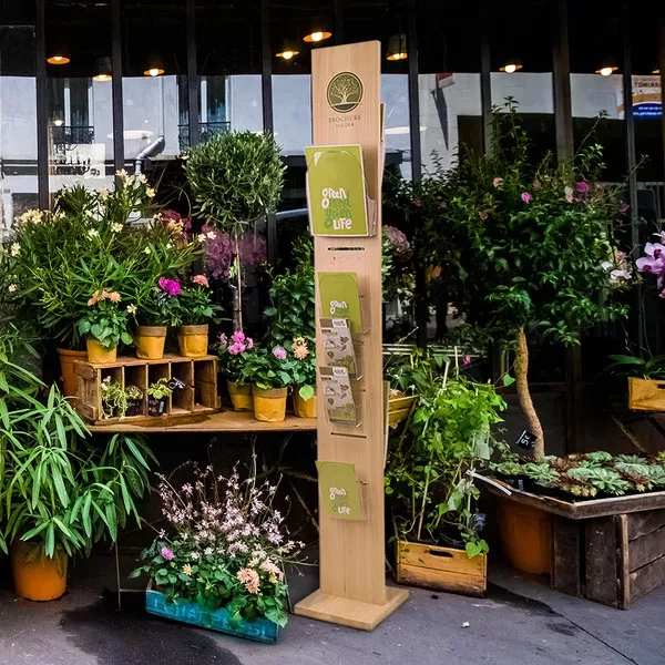 Der Prospektständer für das grüne Marketing: Der Aufsteller ist ressourcen schonend in aus FSC-zertifiziertem Holz aus Trentino-Südtirol hergestellt. Das Stecksystem ist schnell aufgebaut und spart Transportkosten. Die Prospekt-Ablagen aus Spritzguss können beidseitig frei ein-, aus- und umgehängt werden.