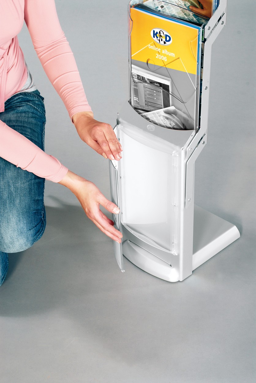 Der Einzelblattkippschutz sorgt dafür, dass Ihre Prospekte auch bei großem Ansturm nicht herausfallen.