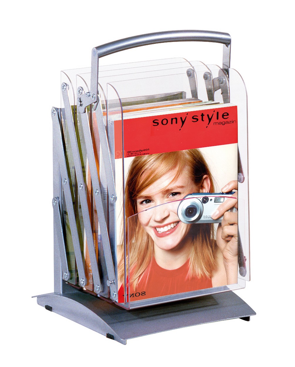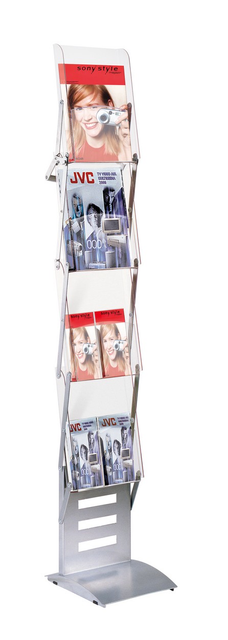 Faltbarer Prospektständer aus pulverbeschichtetem Stahl mit 4 Fächern aus Acryl. Dank der praktischen Faltmechanik ist der Prospektständer schnell aufgebaut, schnell verstaut und leicht zu transportieren, auch im befüllten Zustand. Auch bei täglichem Einsatz eine hohe Lebensdauer. Fülltiefe der Fächer: 43 mm. Ständer zusammenfaltbar von 1550 mm auf 450 mm. Optional mit Transporttasche.