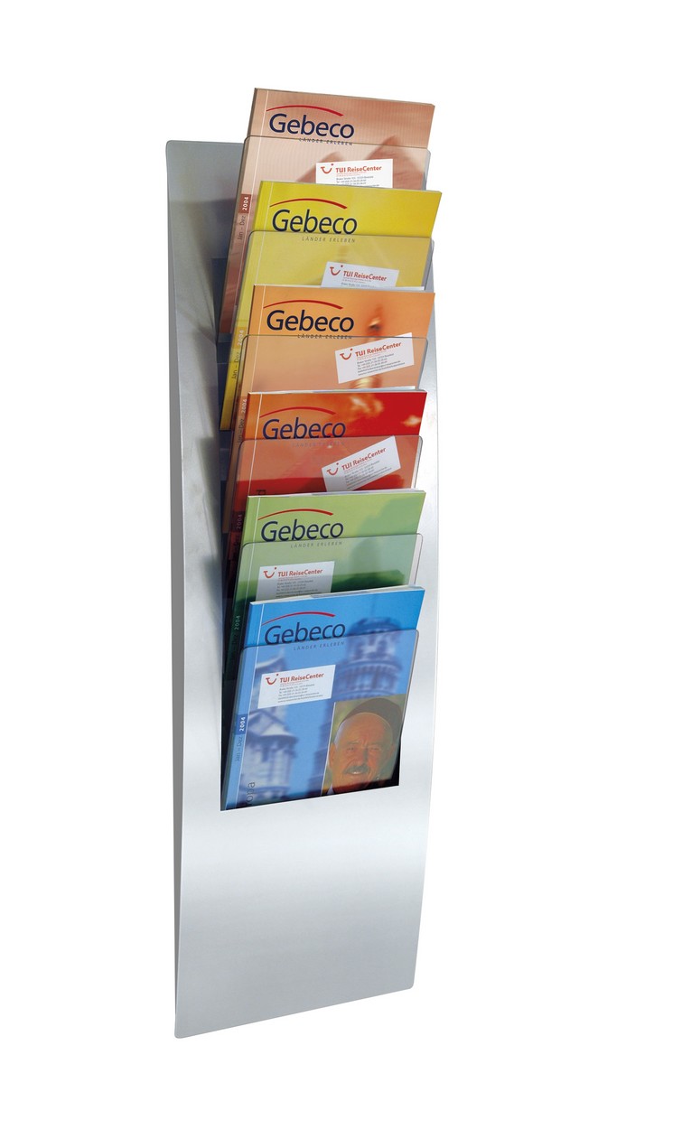 Prospekthalter: 6 Prospekt-Etagen für DIN A4, DIN A5, DIN lang;