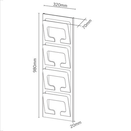 Maße: B 320 x H 980 x T 70 mm