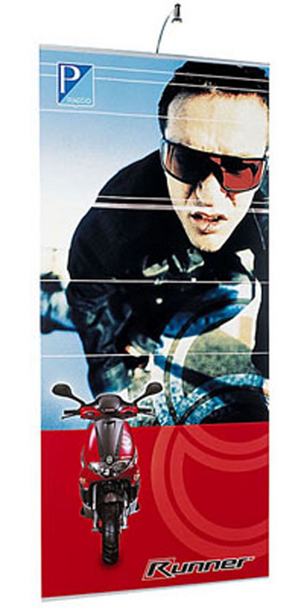 Dieser Bannerstand kann für vielfältigste Ansprüche und Anforderungen quasi maßgeschneidert werden – er ist in zahlreichen Größen erhältlich. Außerdem können mehrere Elemente mittels speziellem Magnetband nahtlos zu größeren Bildflächen zusammengefügt werden! Seine schlanke, diskrete Form macht ihn universell einsetzbar. Der Ständer ist von vorne betrachtet nahezu unsichtbar.