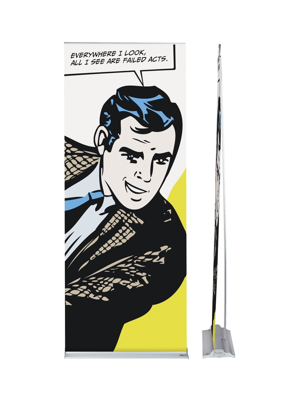 Durch die Teleskopstangen-Verlängerung lässt sich das Roll Up Classic auf eine Höhe von 2450 mm erweitern.