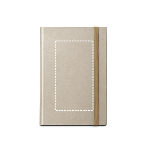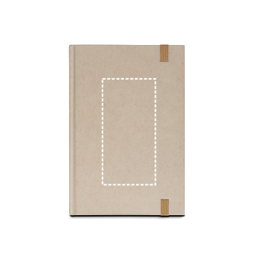A5-Notizbuch mit festem Einband, hergestellt aus Zuckerrohrpapier (80% zuckerrohr). Das Innere enthält 160 linierte Seiten aus Zuckerrohrpapier (80% zuckerrohr) (90 g/m²), einen Trennstreifen und ein Gummiband zum Schließen des Notizbuchs. 147 x 216 mm