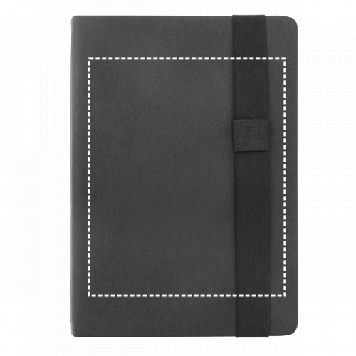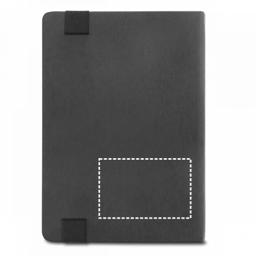 Notizbuch A5 mit Hardcover aus PU mit 280 unlinierten Seiten (70 g/m²), aus FSC™-zertifiziertem Material und anderen kontrollierten Materialien hergestellt, in Elfenbeinfarbe, einem Kugelschreiberhalter (Kugelschreiber nicht enthalten) und einem Gummiband. Geliefert in einem Beutel aus Non-Woven. 145 x 210 mm | Beutel: 185 x 240 mm