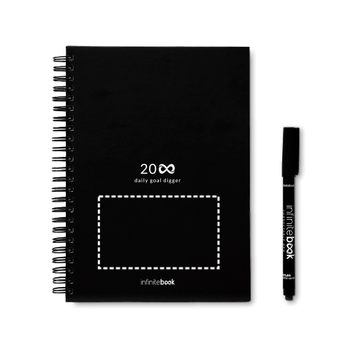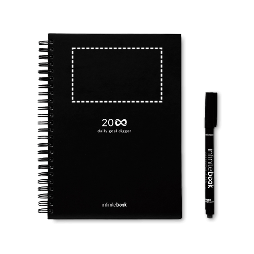 Das „Infinite Diary“-Starterkit ermöglicht es Ihnen, alles, was Sie geschrieben haben, einfach zu löschen und Ihren Tagesplan so oft Sie wollen neu zu beginnen. Es besteht aus einem A5 „Infinite Diary“ mit hartem Einband und Ringen, einem Reinigungsset (leere Sprühflasche, Schwamm und Tuch), einem Marker und einem Markerhalter. Der Inhalt des „Infinite Diary“ besteht aus 2 Seiten für die Aufzeichnung Ihrer Tätigkeiten, 10 Seiten für die Wocheneinteilung, 1 Seite für die Monatseinteilung, 1 Seite für die Jahreseinteilung in Wochen und 22 einfachen Whiteboard-Seiten für Notizen. Die Notizen können gescannt werden. Hergestellt in Europa. Die Produkte werden in einer Schachtel geliefert. 148 x 210 mm | Schachtel: 225 x 175 x 46 mm