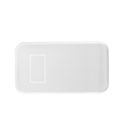 Frischhaltebox aus PP und PS mit 2 Fächer (je 680 mL) und einer herausnehmbarer Trennwand. Enthält Gabel, Messer und Löffel. Schließung mittels Gummiband. Für Mikrowellengebrauch den Deckel abnehmen. 180 x 100 x 100 mm