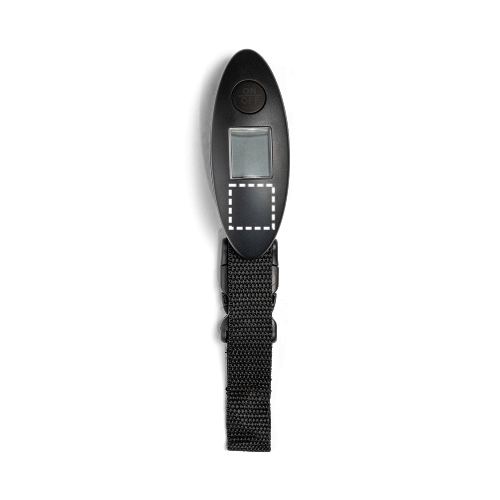 Digitale Kofferwaage aus ABS. Maximalgewicht: 40 kg. Enthält 1 CR2032-Batterie. Es handelt sich um einen Werbeartikel. 37 x 100 x 27 mm