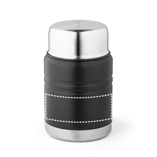 Isolier-Lebensmittelbehälter (bis 550 mL) aus Edelstahl mit doppelwandiger Vakuumisolierung. Enthält einen faltbaren Löffel, dieser ist im Innenraum des Deckels aufbewahrt. Geliefert in einer Kraftpapierschachtel. ø95 x 154 mm