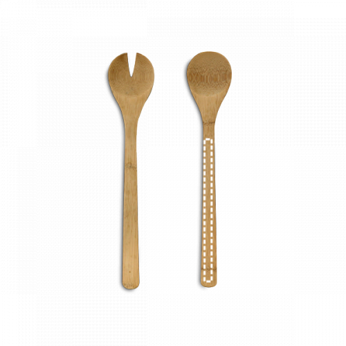 Salatbesteck Set aus Bambus. Da das Produkt aus natürlichen Materialien hergestellt wird, können Farbe des Produkts sowie das Druckergebnis von Produkt zu Produkt unterschiedlich sein. 300 x 60 mm