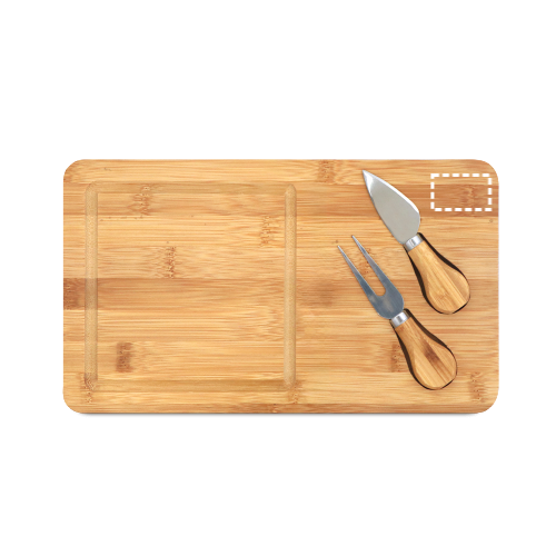 Käsebrett aus Bambus mit 2 Utensilien aus Edelstahl. Geliefert in einer Geschenkschachtel aus Kraftpapier. Da das Produkt aus natürlichen Materialien hergestellt wird, können Farbe des Produkts sowie das Druckergebnis von Produkt zu Produkt unterschiedlich sein. 310 x 180 x 15 mm | Schachtel: 316 x 186 x 25 mm