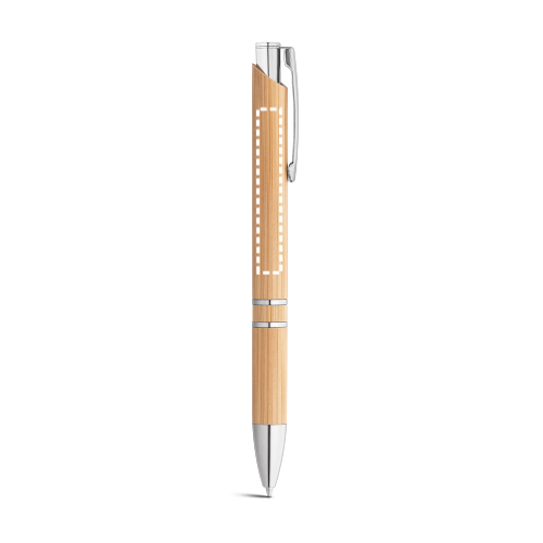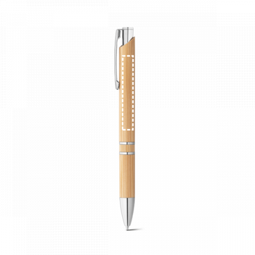 Kugelschreiber aus Bambus mit Clip und Details aus Metall. Da das Produkt aus natürlichen Materialien hergestellt wird, können Farbe des Produkts sowie das Druckergebnis von Produkt zu Produkt unterschiedlich sein. ø11 x 141 mm
