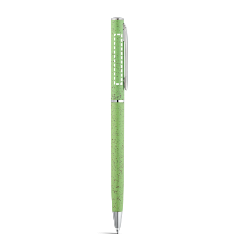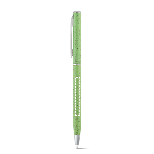 Kugelschreiber aus Weizenstrohfaser und ABS mit schwarzschreibender Mine. Mit Drehmechanismus und Clip aus Metall. Da das Produkt aus natürlichen Materialien hergestellt wird, können Farbe des Produkts sowie das Druckergebnis von Produkt zu Produkt unterschiedlich sein. ø8 x 126 mm