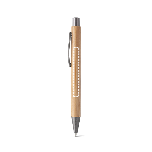 Kugelschreiber aus Bambus mit Clip aus Metall. Blauschreibende Mine. Da das Produkt aus natürlichen Materialien hergestellt wird, können Farbe des Produkts sowie das Druckergebnis von Produkt zu Produkt unterschiedlich sein. Ø11 x 137 mm