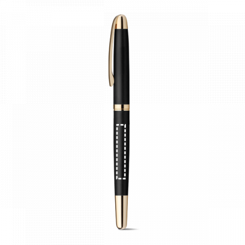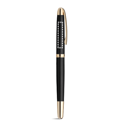 Rollerball aus Metall mit Clip und goldenen Details. Blauschreibende Mine. Geliefert in einem Geschenketui aus Kraftpapier. ø11 x 140 mm | Etui: 180 x 43 x 22 mm