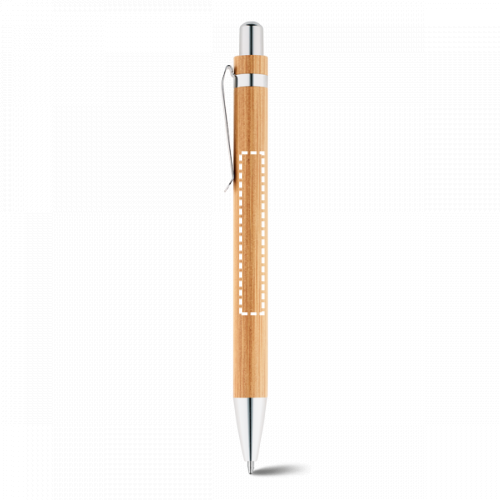 Kugelschreiber aus Bambus mit Clip aus Metall. Da das Produkt aus natürlichen Materialien hergestellt wird, können Farbe des Produkts sowie das Druckergebnis von Produkt zu Produkt unterschiedlich sein. ø11 x 138 mm