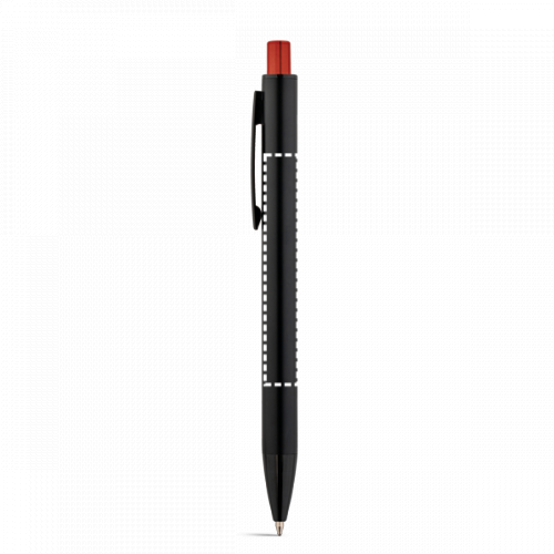 Kugelschreiber aus Aluminium mit blauschreibender Mine und matter Oberfläche. Der Kugelschreiber hat zwei unterschiedliche Oberflächen, die eine Lasergravur erleichtern mit farbigem Effekt. ø10 x 140 mm